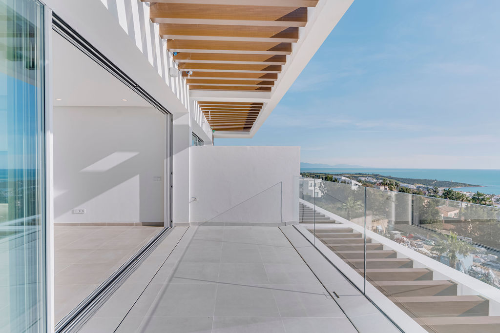Los apartamentos contemporáneos presentan un diseño moderno y elegante con interiores amplios y luminosos. Se ubican en una suave ladera orientada al sur con espectaculares vistas de 180º al faro, el mar Mediterráneo, África y Gibraltar. Los interiores son amplios y luminosos, con zonas de estar diáfanas que realzan el paisaje panorámico y la luz natural. Los ventanales de suelo a techo dan acceso al generoso espacio exterior y potencian la sensación de inmensidad que ofrece el paisaje. Estas viviendas cuentan con acabados de alta calidad, con cocinas totalmente amuebladas con encimeras de Silestone y electrodomésticos de primeras marcas, baños de lujo con grifería Grohe y calefacción por suelo radiante. Entre sus características destacan los suelos de porcelana de gran tamaño, el aire acondicionado frío-calor y el sistema de aerotermia. Todas las viviendas incluyen plazas de aparcamiento y trasteros.