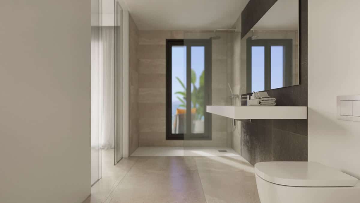 Villa pareadas de 3 dormitorios en venta en Serene Atalaya Estepona. Todas las viviendas en este complejo disfrutan de un diseño moderno y están construidas con altos estándares de calidad. Todas cuentan con tres habitaciones, suelos de porcelana, aire acondicionado frío y calor, calefacción por suelo radiante, cocinas de planta abierta totalmente equipadas y baños modernos. Hay grandes ventanales que van del suelo al techo con acceso a terrazas muy amplias y jardines privados. Disfrutan de una orientación oeste soleada, y están asentadas en una suave pendiente con magníficas vistas.