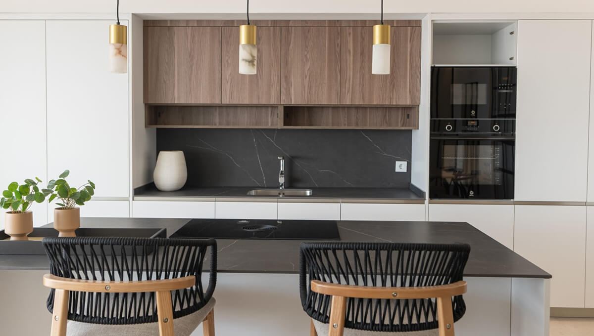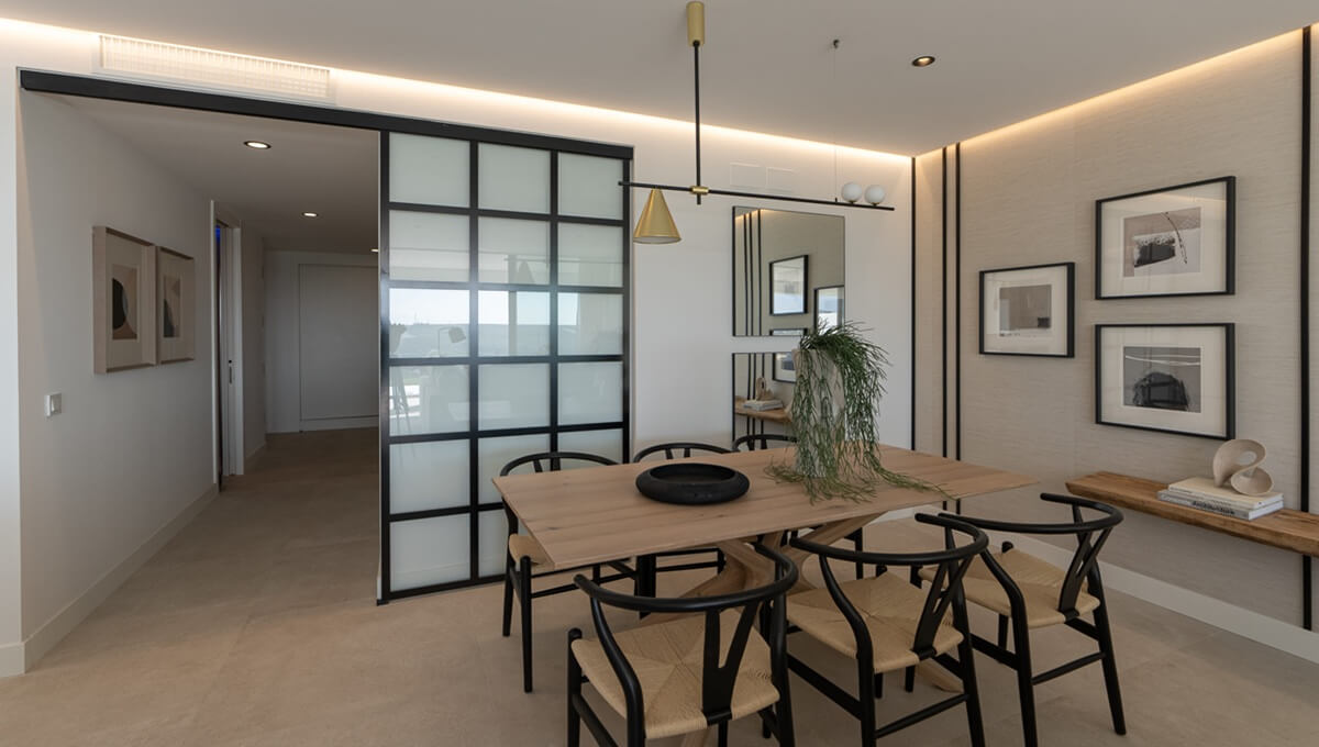 Some high-end features are extra-large porcelain tiles, an aerothermal system for hot water, air conditioning hot and cold, an air zone system, high-quality appliances in the kitchen, and equipped bathrooms with underfloor heating.