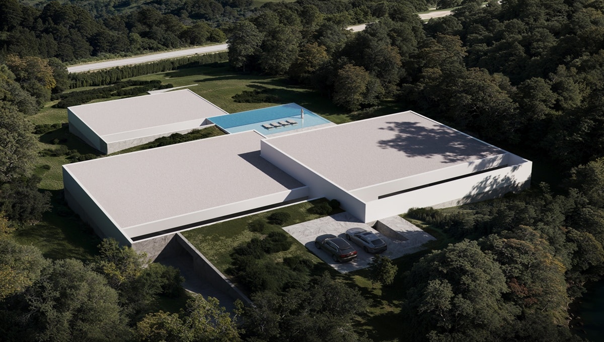Wellness facilities include an indoor pool, sauna, gym, and Turkish bath. Outside, there’s a swimming pool, water feature, and eco-friendly gardens. Ideal for families and guests, Villa Noon offers privacy and comfort with two distinct living areas connected by landscaped gardens. The garden design complements the villa’s shape and enhances its integration with the environment.